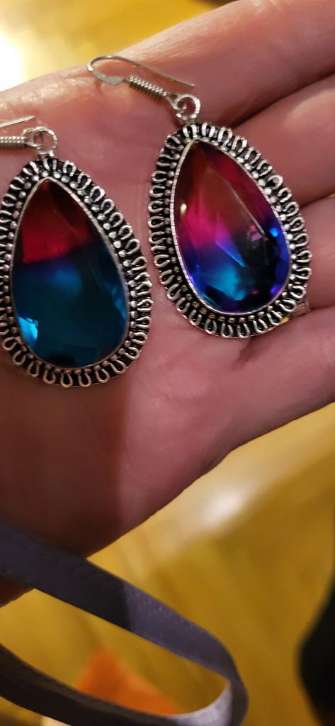 Bi-Color Tourmaline Gemstone 925 Sterling Silver Jewelry Earring 2.09"