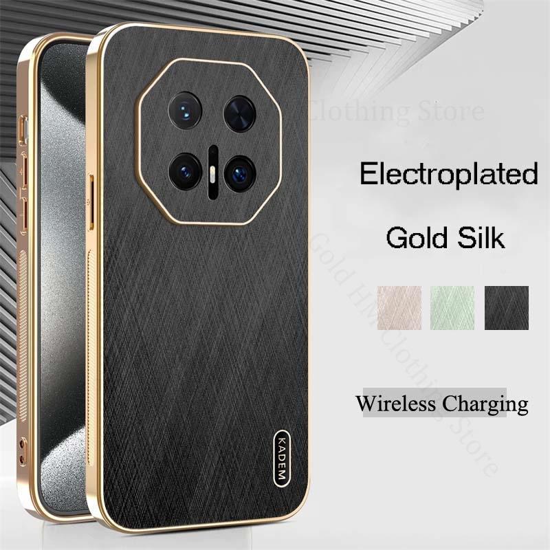 6D Plating Gold Silk Texture Leather Phone Case For Huawei Mate 70 RS 60 Pro Plus Ultra Slim Electroplated Cover Pura 70 P60 Pro