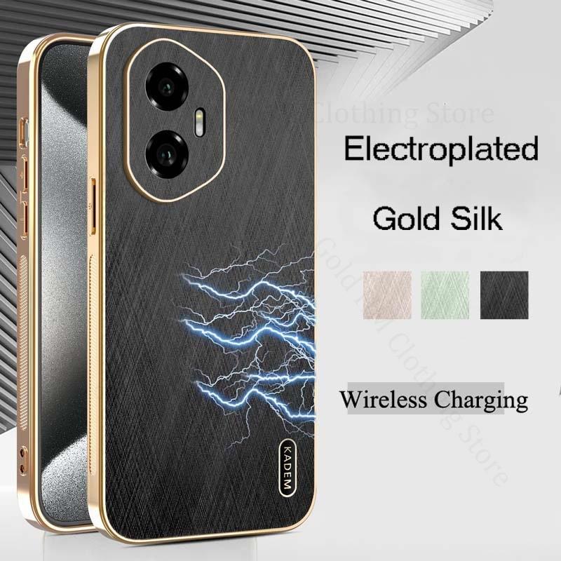 Gold Silk Leather Texture Plating Phone Case For Honor 300 Ultra 200 Pro X60 Pro 6D Electroplated Tough Cover Magic 7 Pro 6 Pro