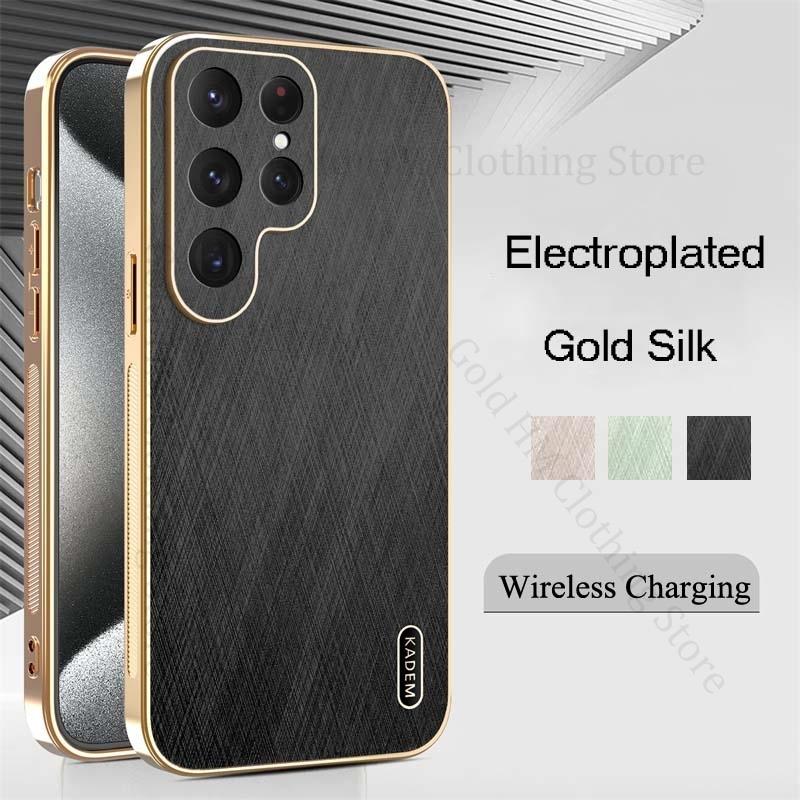 Gold Silk Texture Leather Phone Plating Case For Samsung Galaxy A55 A54 A53 A52 A35 A16 A06 A34 A33 5G Electroplated Tough Cover