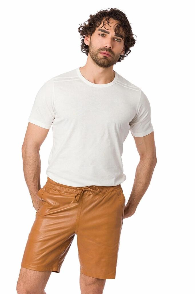 Leather Shorts Boxer Lambskin Genuine Men Stylish Beige Biker Gym Unique 100%
