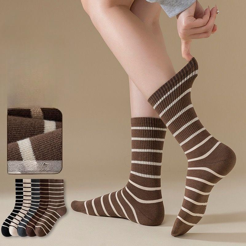 Striped Pile Pile Socks for Women, Mid-calf, Autumn and Winter, Pure Cotton Sweat-absorbing Women's Socks, School-style Retro Socks, Cotton Socks