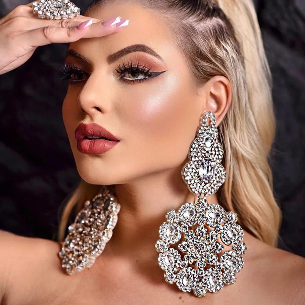 Full of Diamonds Exaggerated Earrings Retro Design Sense Flash Rhinestone Earrings Catwalk Accessories Earrings