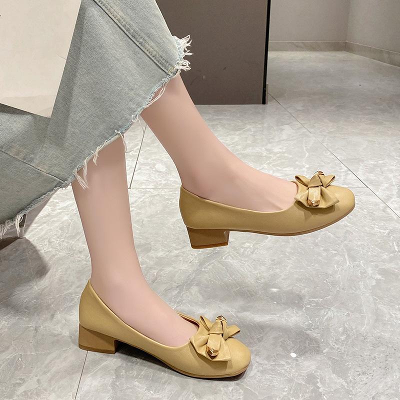 Doudou Shoes Women's Middle Heel Summer 2025 New Versatile Shallow Mouth Laden Shoes Evening Gentle Fairy Wind Four Seasons Single Shoes