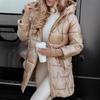 Women's Long Puffer Coat with Hood, Diamond Quilted Design, Metallic Finish, Multi-Color