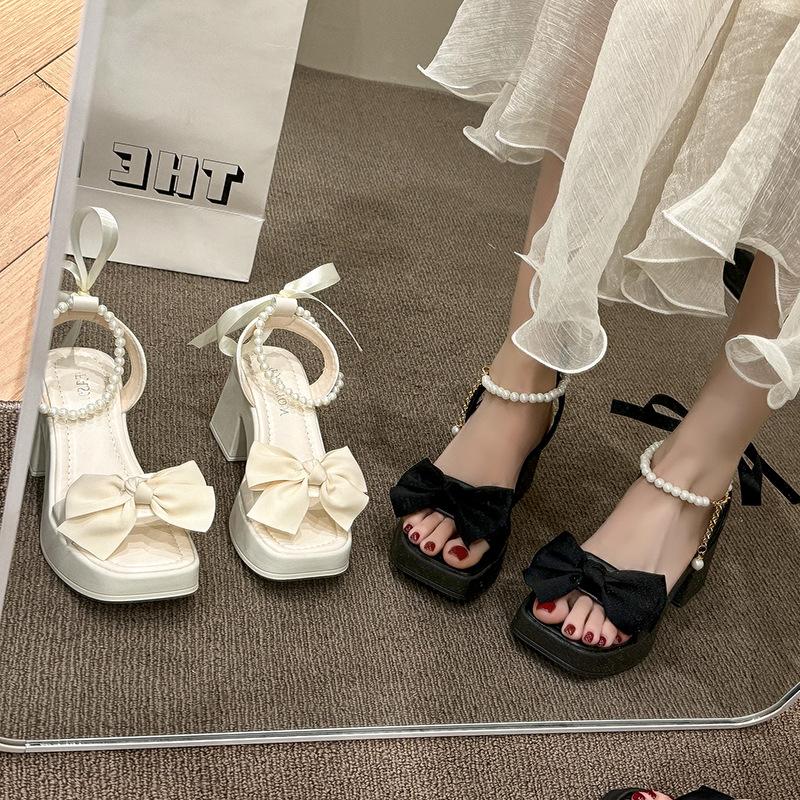 Sandals for Women Summer 2025 New Fashionable and Versatile Pearl Toe French High Heels
