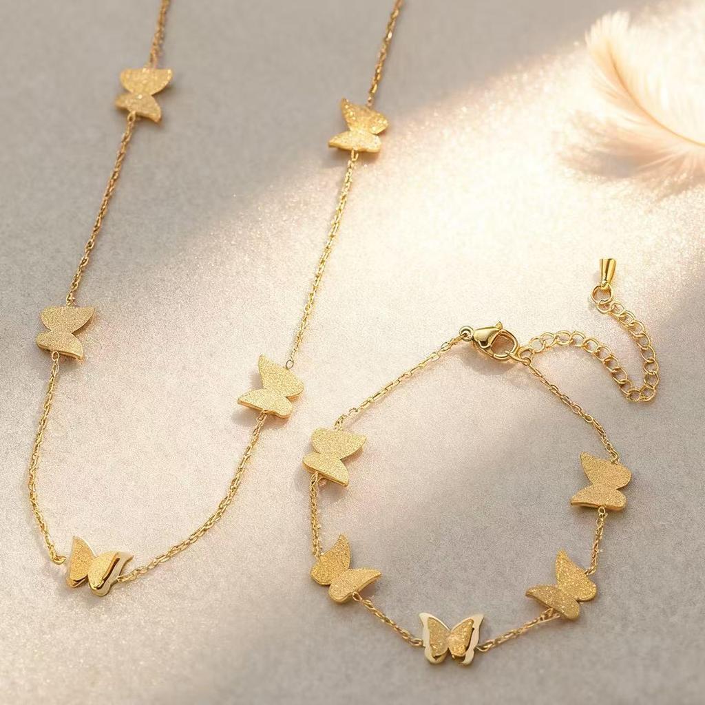 Korean Style Frosted Butterfly Necklace: Elegant, Simple, Versatile Gold-Plated Titanium Steel Design