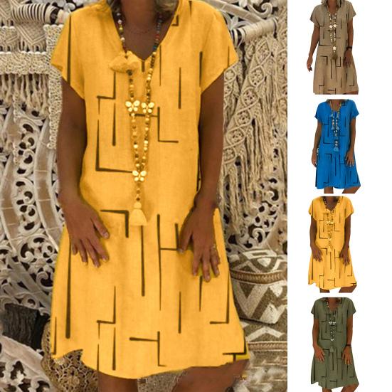 Simple dress features V-neck and short sleeve design, which makes you look very casual and chic. Loose fit casual dress is perfect for you to wear in summer.