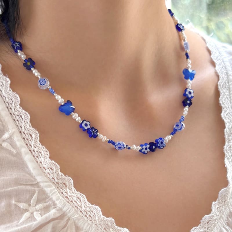 Sizeblue flower pearl necklace