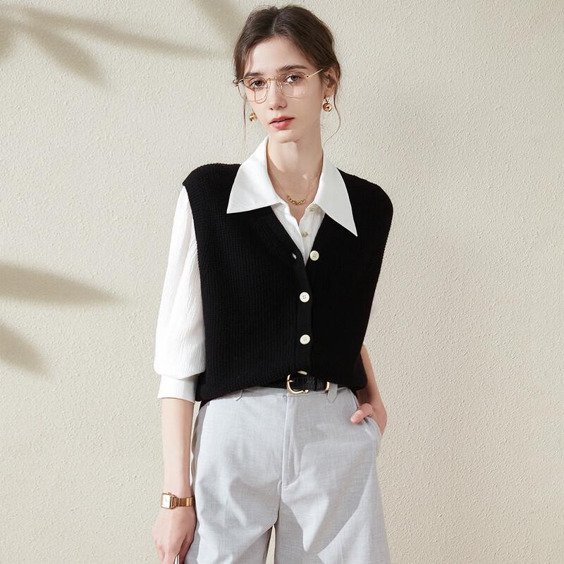Tuhuang Women's Pure Wool V-Neck Cardigan Vest