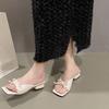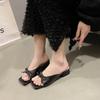 2025 New Comfortable Low Heel Square Head Sandals Sweet Bow Silk Thick Heel Slippers for Ladies Outwear Slides Heels Black