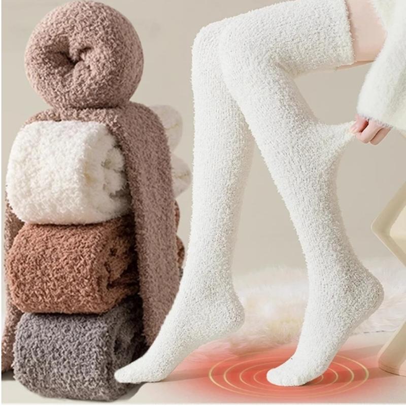Winter Warm Coral Fleece Over-knee High Socks for Women Plush Home Sleep Floor Long Socking Jk Solid Soft Thigh High Fun Sock