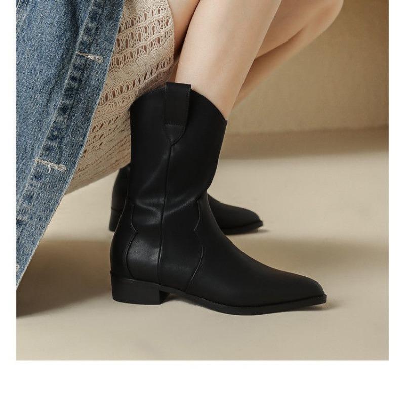 Skinny Pointed Cowboy Boots Women's New Boots Thick Heel Medium Tube Martin Boots Retro Brown Knight Boots