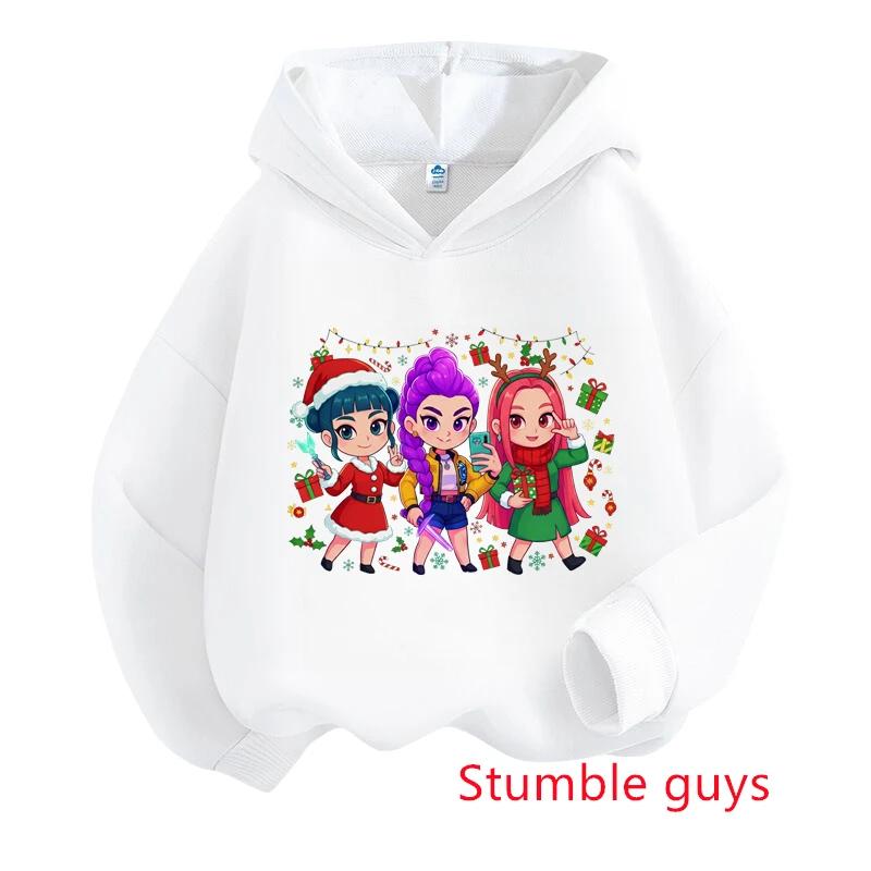 K-pop Demon Hunter Girl Kids Sweatshirt Autumn/Winter Christmas Soft and Warm Santa Claus Print Comfortable Pullover