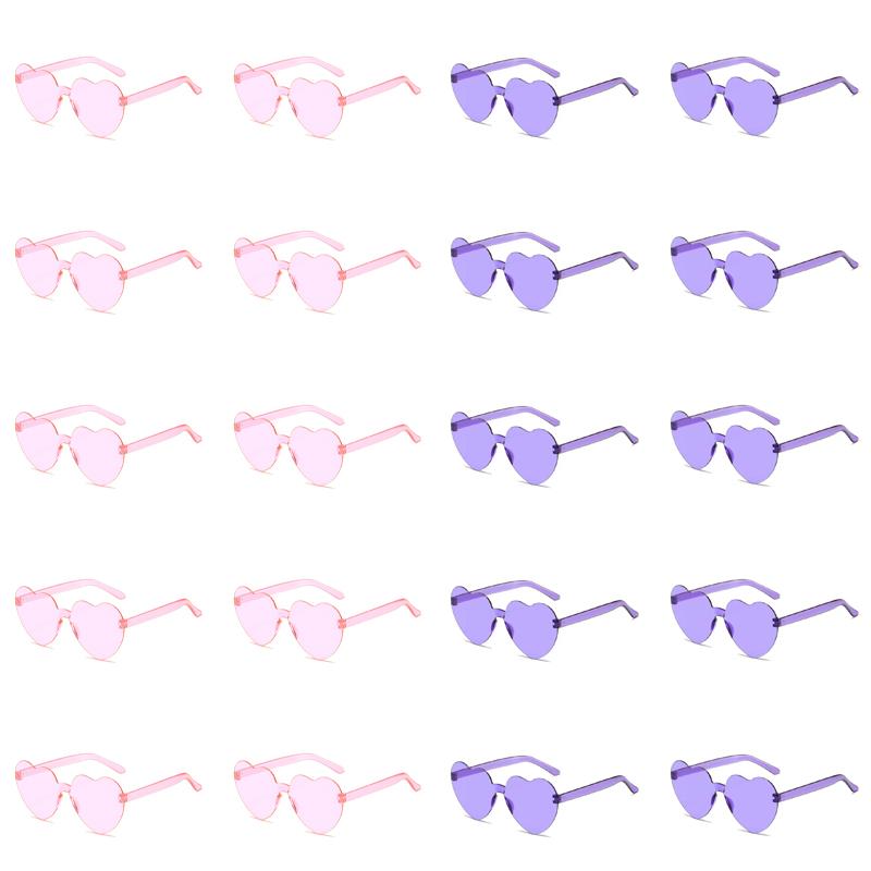 20 Pairs Per Set Heart Designer Fashion Sunglasses Candy Color Decor Shades Stylish Brand Beach Sun Glasses for Women's