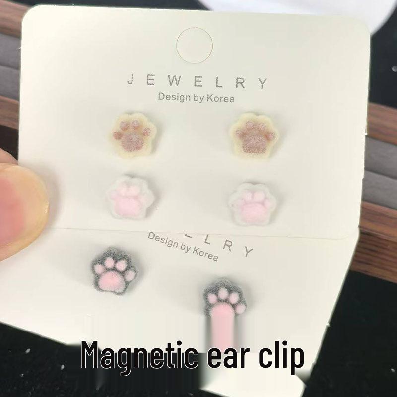 Adorable Cat Paw Magnetic Ear Clips - No Piercing Cartoon Earrings for Women