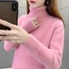 Women's High Neck Mink Cashmere Sweater - Solid Color, Thick Knit, Autumn/Winter 2025 Fashion Pullover Top