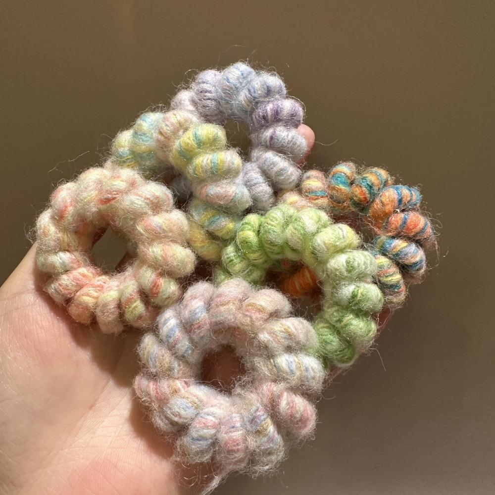 Beautiful Colorful Yarn Hairbands for Women Telephone Coil Shaped Strong Elastic Hairbands Autumn Winter Headwear