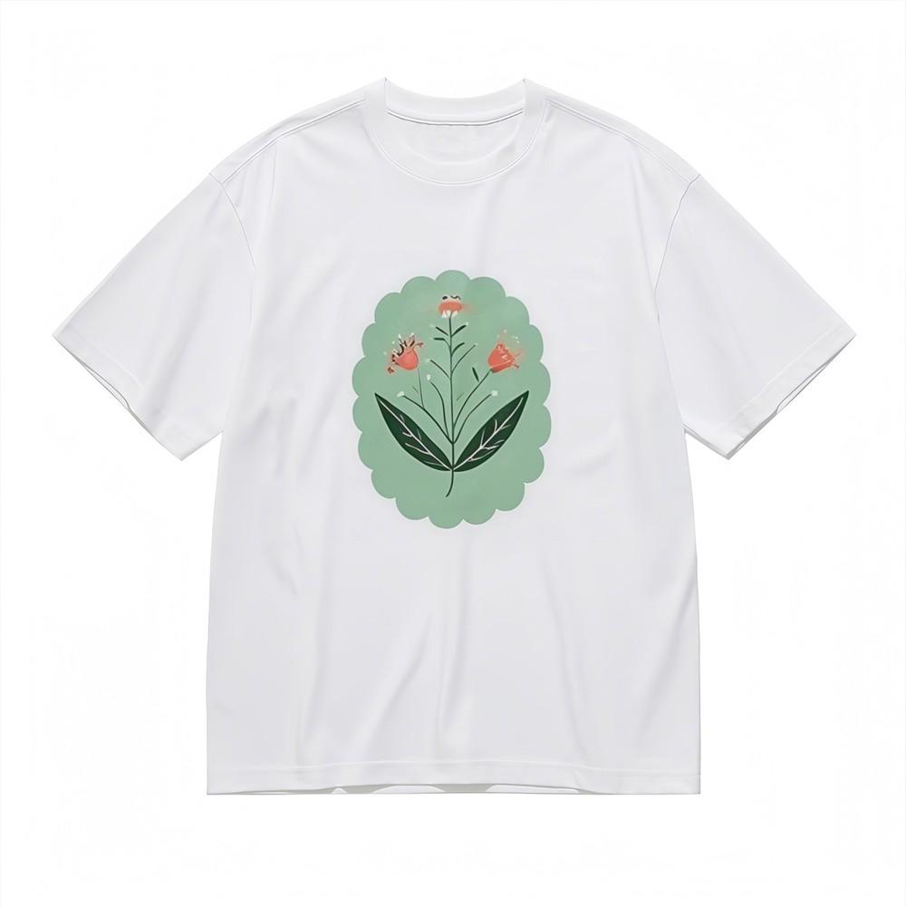 Women's Soft Breathable All Season Classic T-Shirt Floral With Green Frame Tee