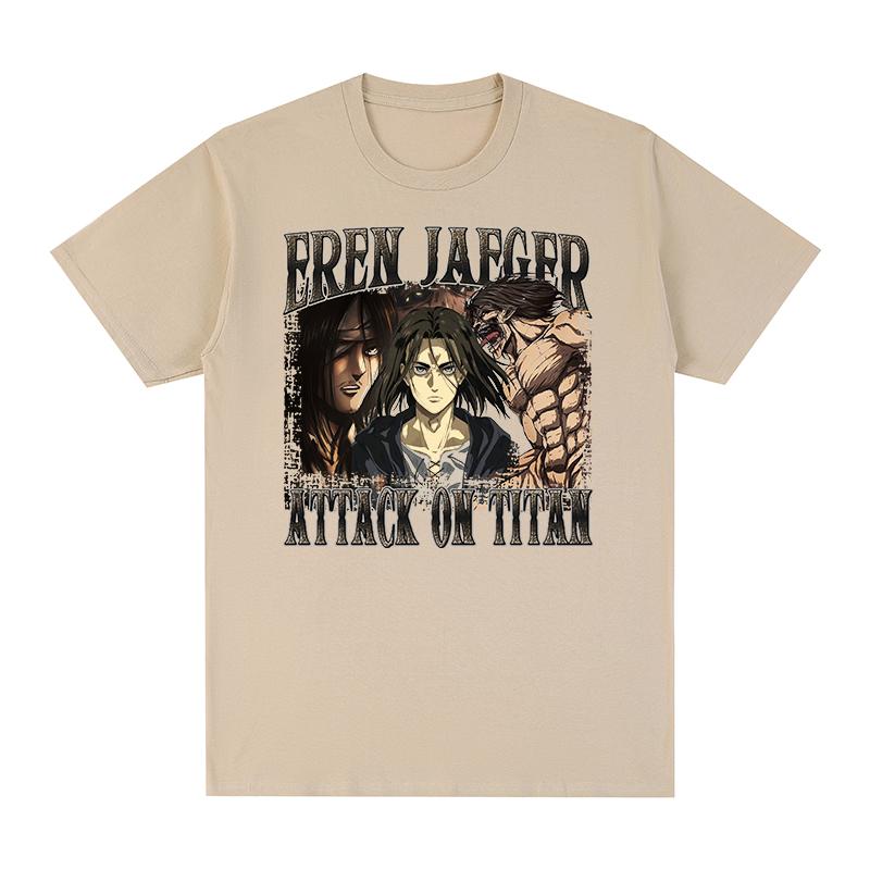 Eren Yeager Giant Attack On Titan Vintage T-shirt Hip Hop Streetwear Anime Cotton Men T Shirt New Tee Tshirt Womens Tops