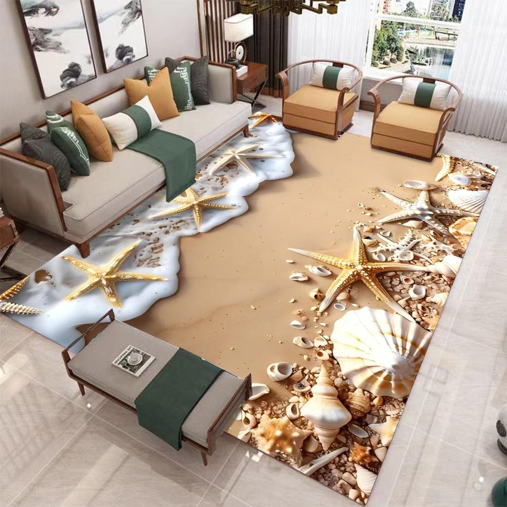 2025 3d Starfish Beach Shell Sea Star Sand Carpet Rug for Living Room Bedroom Home Sofa Decoration,Kids Play Non-slip Floor Mat
