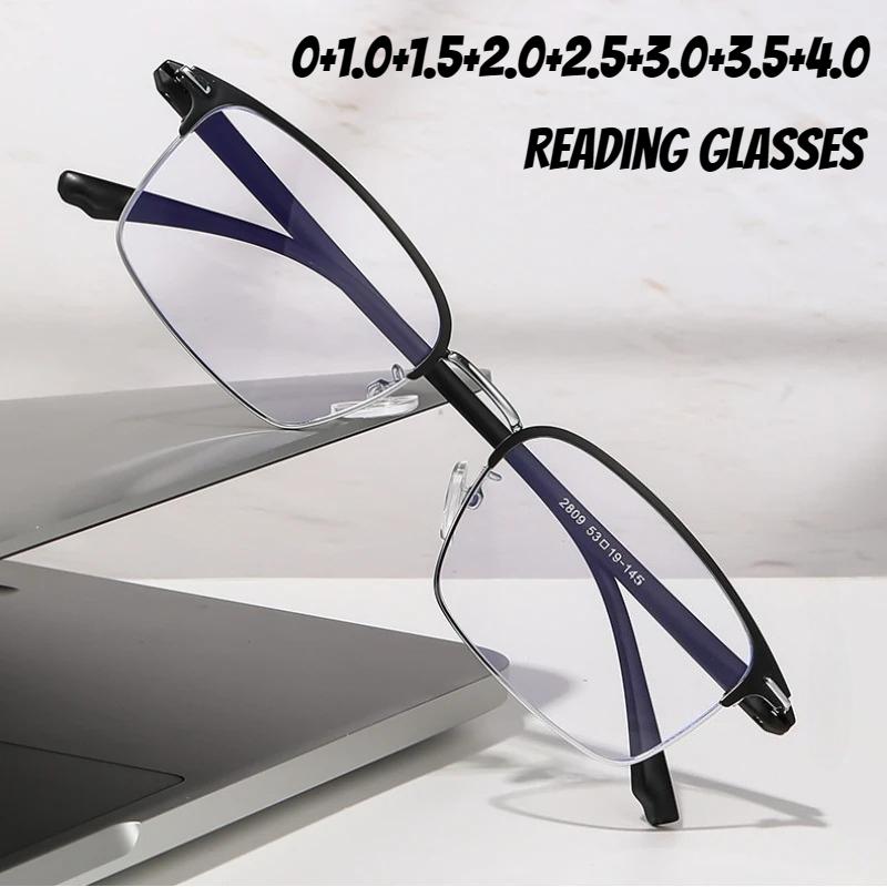 Business Luxury Metal Frame Reading Glasses Unisex Fashion Square Far Sight Eyewear Women Men Hd Lens Eyeglasses 0+1.0+4.0