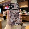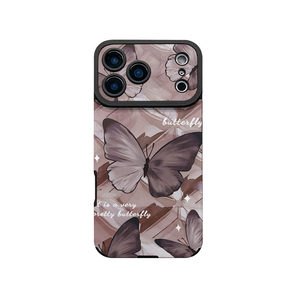 Butterflies Printed Vertical Grain Leather Soft Silicone Phone Case Back Cover with Camera Lens Full Protection for iPhone 17