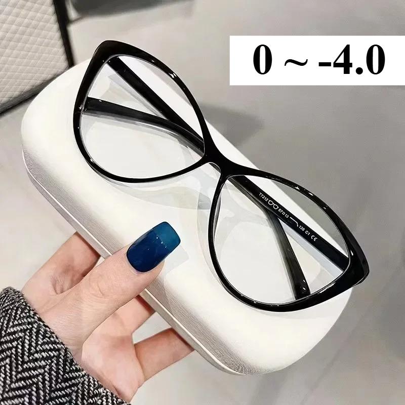 Women'S Vintage Cat Eye Myopia Glasses Fashion Anti Blue Light Transparent Eyeglasses Large Frame Reading Computer Glasses