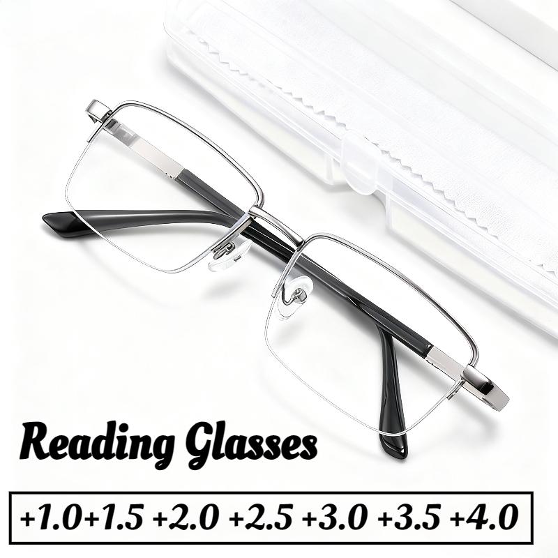 Men'S Fashion High-Definition Anti-Blue Light Presbyopia Glasses Neutral Fashion Business Half Frame Glasses For Farsightedness