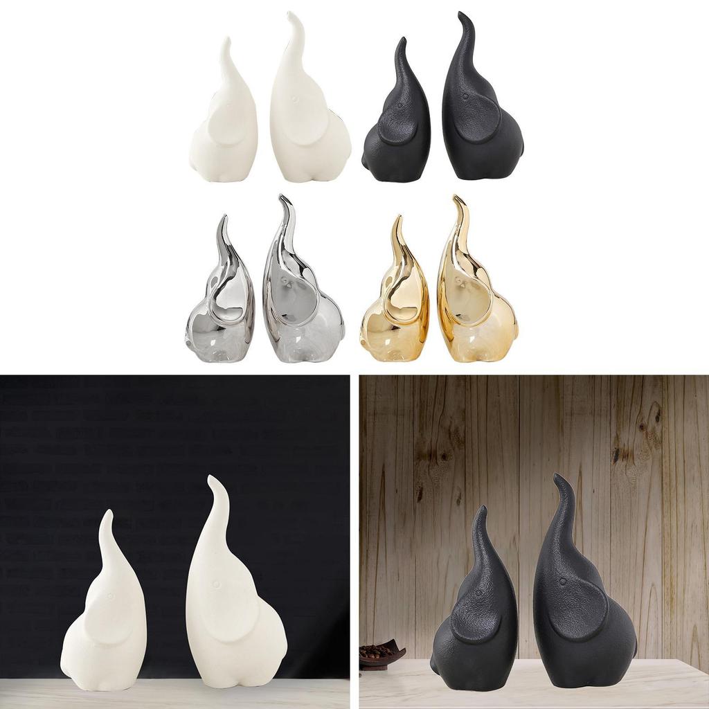 2x Elephant Figurine Sculpture Art Statuette Desk Animal Present Cute Ornament