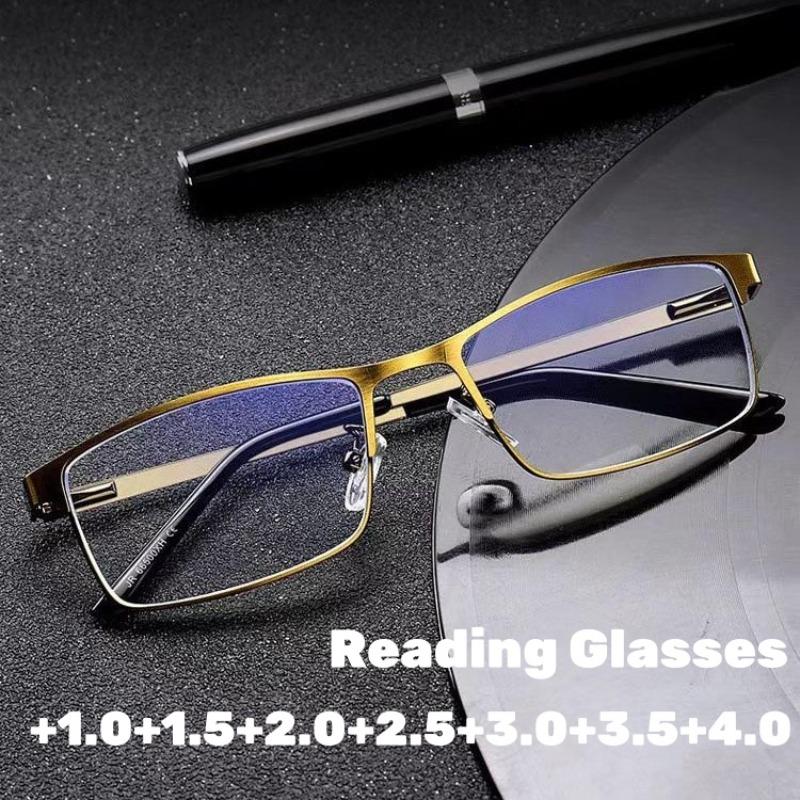 Business Metal Spring Leg Reading Glasses Men and Women Metal Square Frame Anti Blue Light Eye Presbyopia Glasses with Diopter
