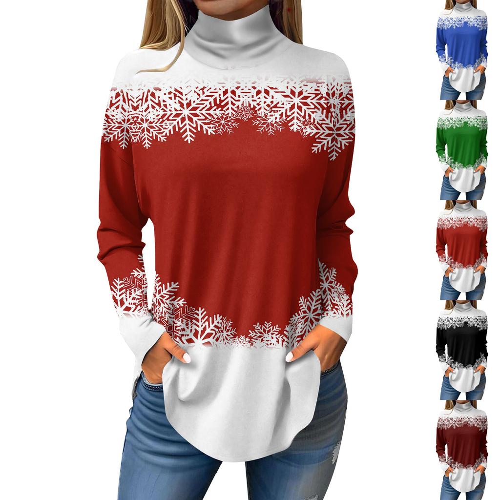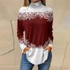 Women Fall Casual Long Sleeve Shirts Sweatshirt Vintage Printed High Neck Top Pullover