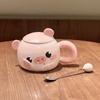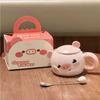 Cute Cartoon Piggy Ceramic Cup Girl Heart Mug with Lid Spoon Office Coffee Mug Birthday Gift