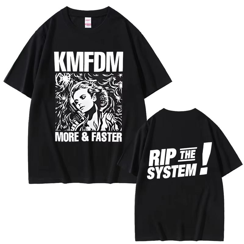 Vintage Hardcore Alternative Rock Kmfdm More and Faster Rip The System T-shirt Men Women Fashion Harajuku Streetwear T Shirts