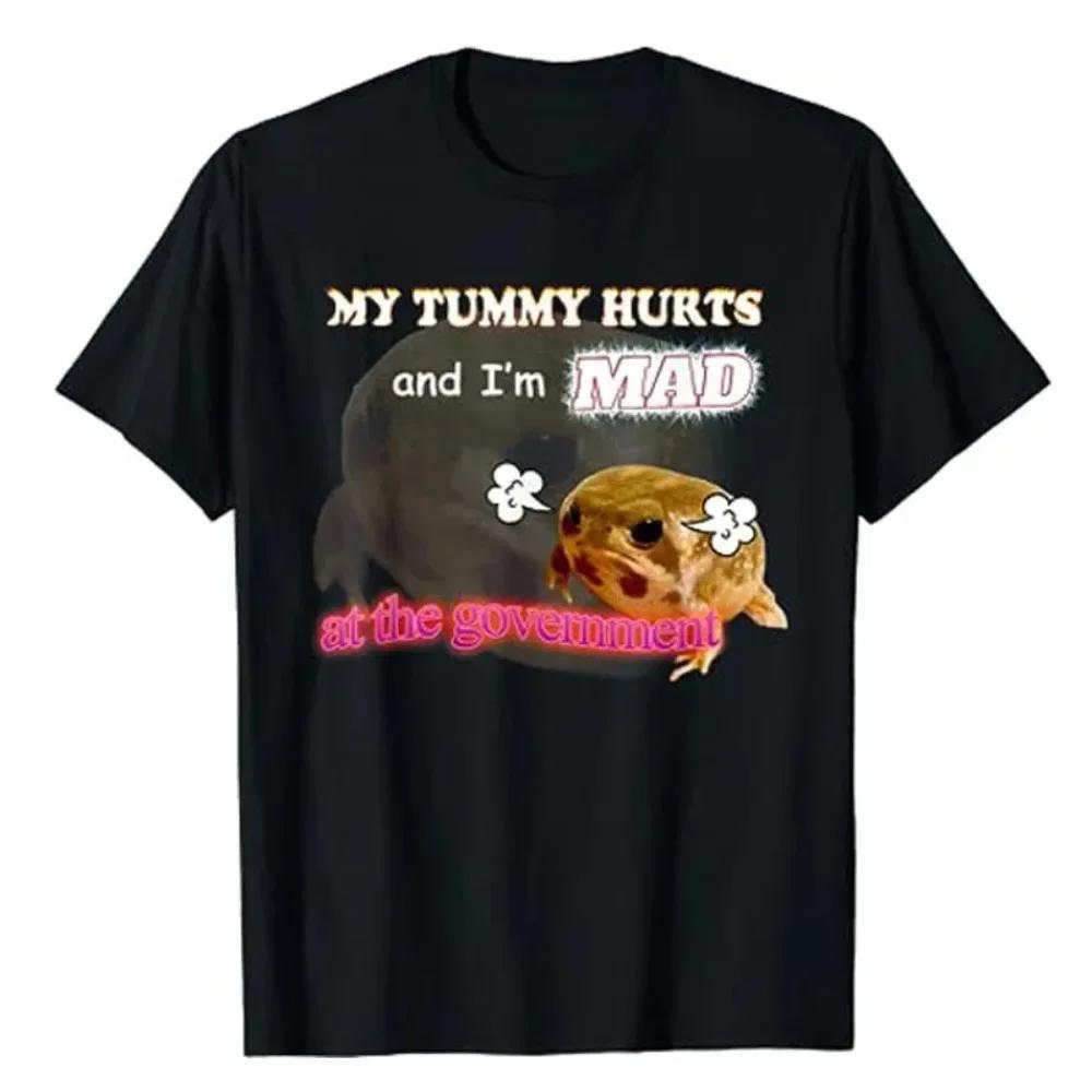 My Tummy Hurts and I'm MAD At The Government Meme T-Shirt Humor Funny Grumpy Frog IBS, Gastroesophageal Reflux Graphic Tee Tops