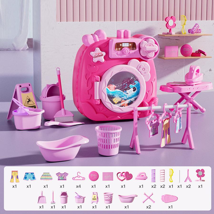 Kids Washing Machine Toy Pretend Play House Mini Simulation Electric Toys Rotate Kinetic Cleaning Preschool Toys For Girls