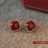 Vintage Enamel Stud Earrings for Women - Wine Red Geometric Square Metal Earrings, Hypoallergenic Wedding & Party Jewelry Gift