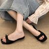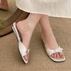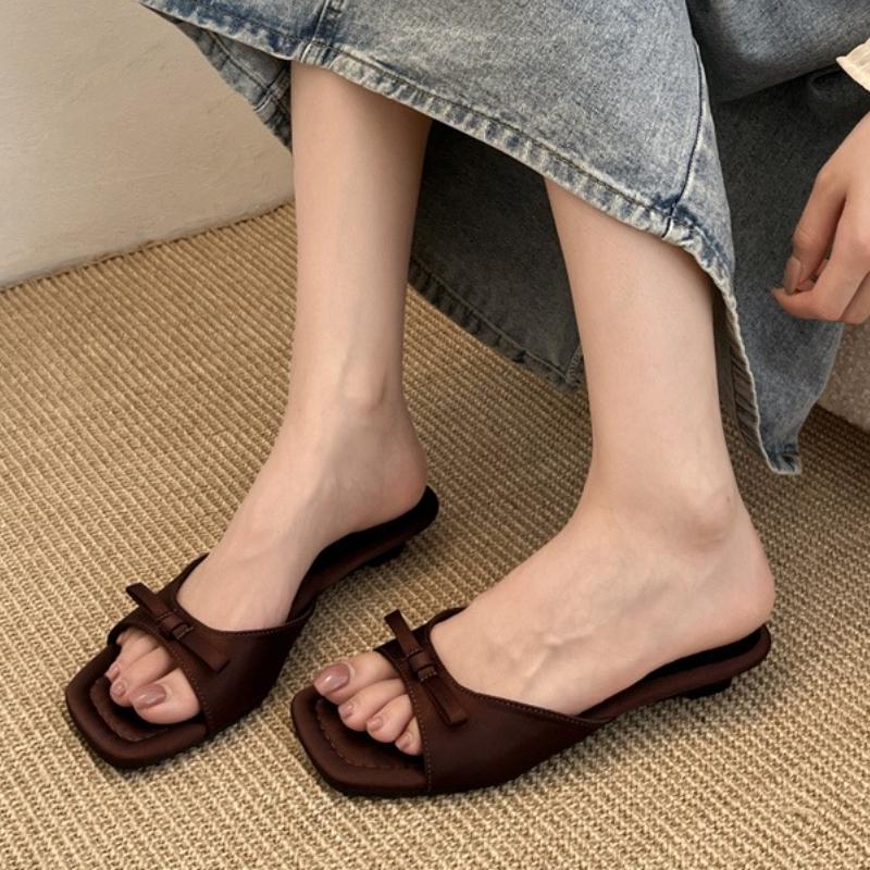 Fashion 2025 New Comfortable Low Heel Square Head Sandals Sweet Bow Silk Thick Heel Slippers Ladies Outwear Beach Slides Mujer