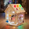 Wooden Children's Montessori Early Education LED Light, Sound and Light Busy House Mechanism, Unlocking Power Switch, Educational Desktop Toy
