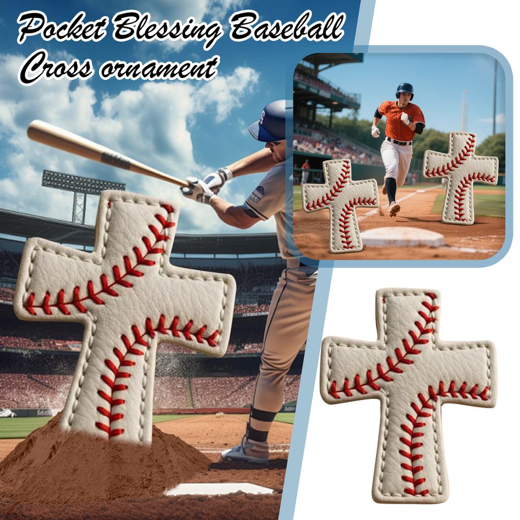 Pocket Blessing Baseball Cross Edition, Hand Sewn Baseball Pattern Pocket Cross Pendant