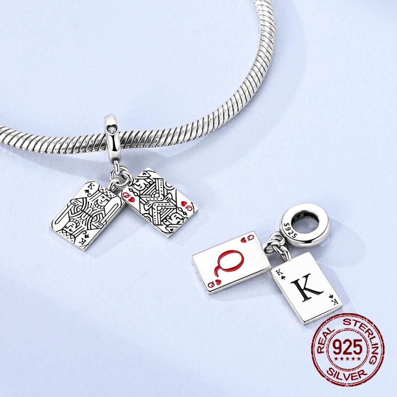 Playing Cards Charms Bead Copper Spades K Hearts Q Dangle Pendant Fit Bangle Bracelet Necklace Diy Jewelry