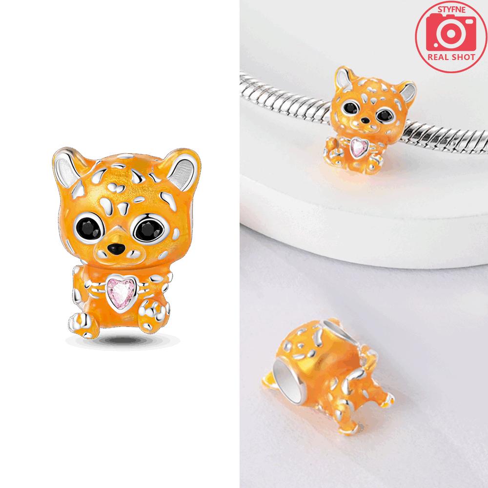Cute Cheetah Heart-Shaped Beads Copper Original Beads Fit Original Charms Bracelet Bead Jewelry Gifts For Women