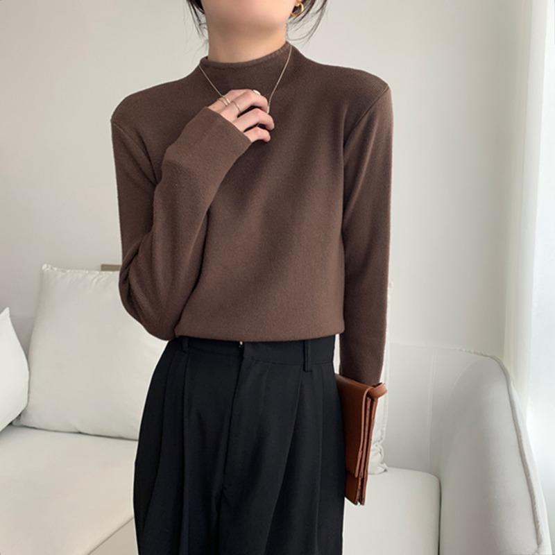 Coffee Semi-turtleneck Stacked Knitted Sweater Women's Autumn and Winter Simple Inner Long-sleeved Bottoming Top Soft Waxy Basic Sweater