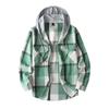 Men's Striped Plaid Casual Loose Button Lapel Long Sleeve Hooded Cardigan Shirt Jacket