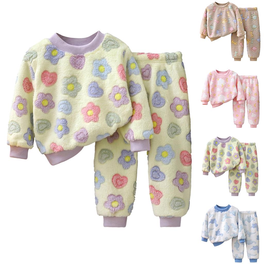 Children's Thickened Flannel Warm Home Wear And Pajamas Set For Boys And Girls