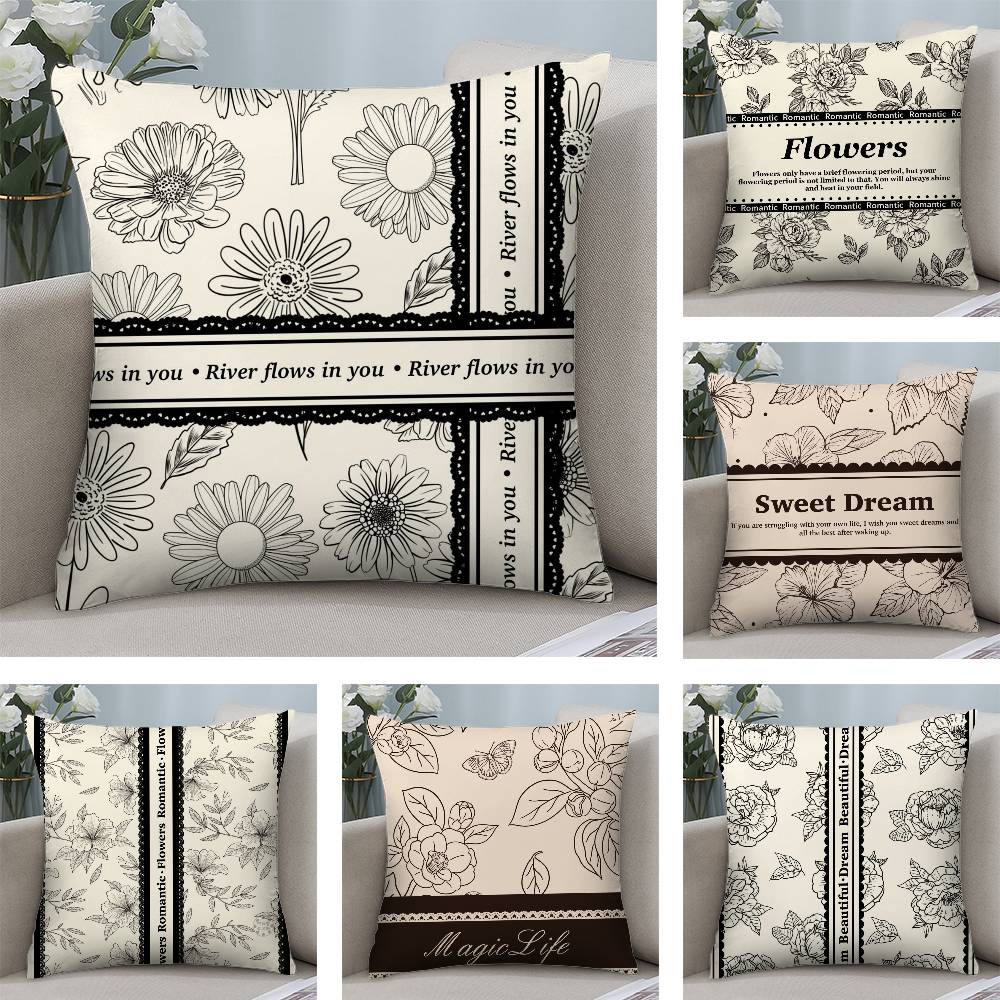 Beautiful Retro Flowers Pillow Case Plush Fabric Soft Double Sided Print Home Sofa High Quality Cushion Cover Throw