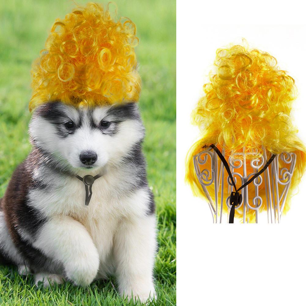 Stylish Yellow High Hat Pet Wig With Bangs Ideal For Cats And Dogs For Halloween And Christmas Celebrations