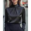Women's Satin Shirt with Stand Up Collar and Pleated Long Sleeved Top, Elegant and Slimming Shirt for Commuting In The Workplace