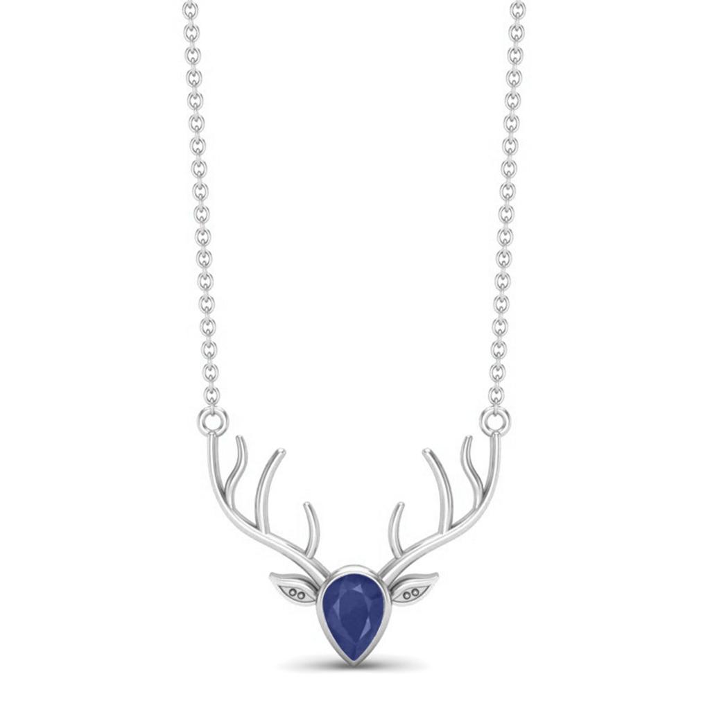 Blue Sapphire Stag Head Necklace - Sterling Silver