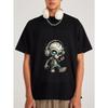 Cotton T Shirt White Skeleton with Headphones and Blue Eyes Cartoon Design for Casual Wear